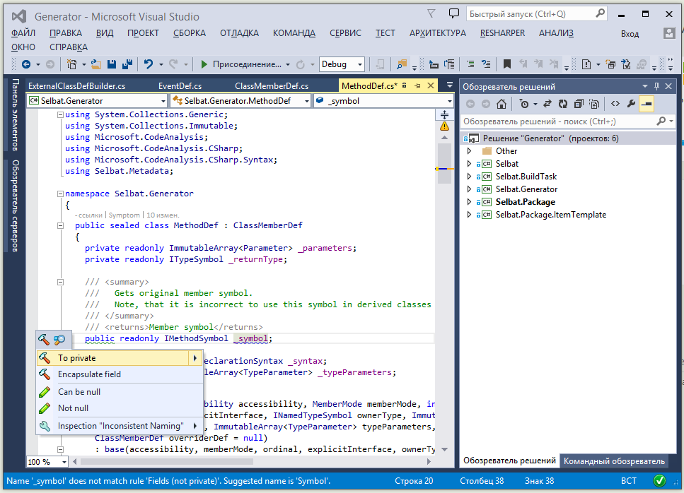 Resharper 8 сразу предлагал в контекстном меню исправить имя на Symbol.