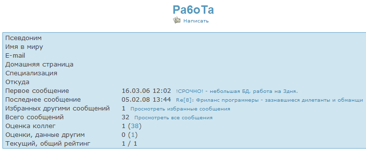 А посмотрите в его профиле все сообщения. Правда там по-моему нету самой предыдущей серии с называнием фамилии зазнавшегося фрилансера, наверное модераторы убрали, или я плохо ищу.
