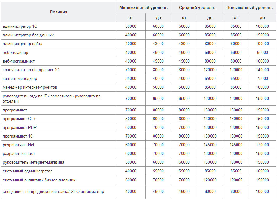 Зарплаты программистов в Москве и московской области
