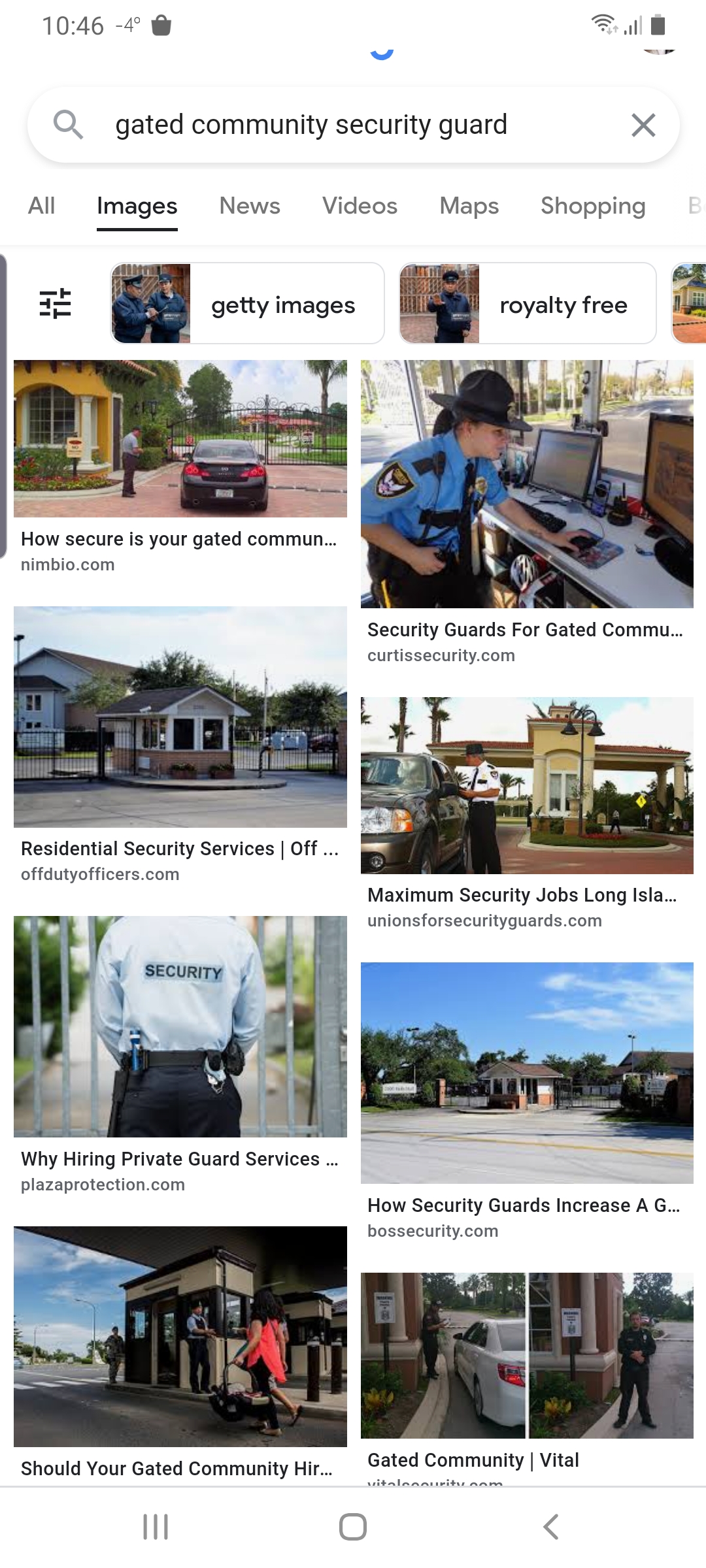 это не пример, это результат поиска по словам. Результат выдает какие-то картинки, которые про security guards. Они есть, могут патриулировать терриотрию или парковочные талоны выдавать.