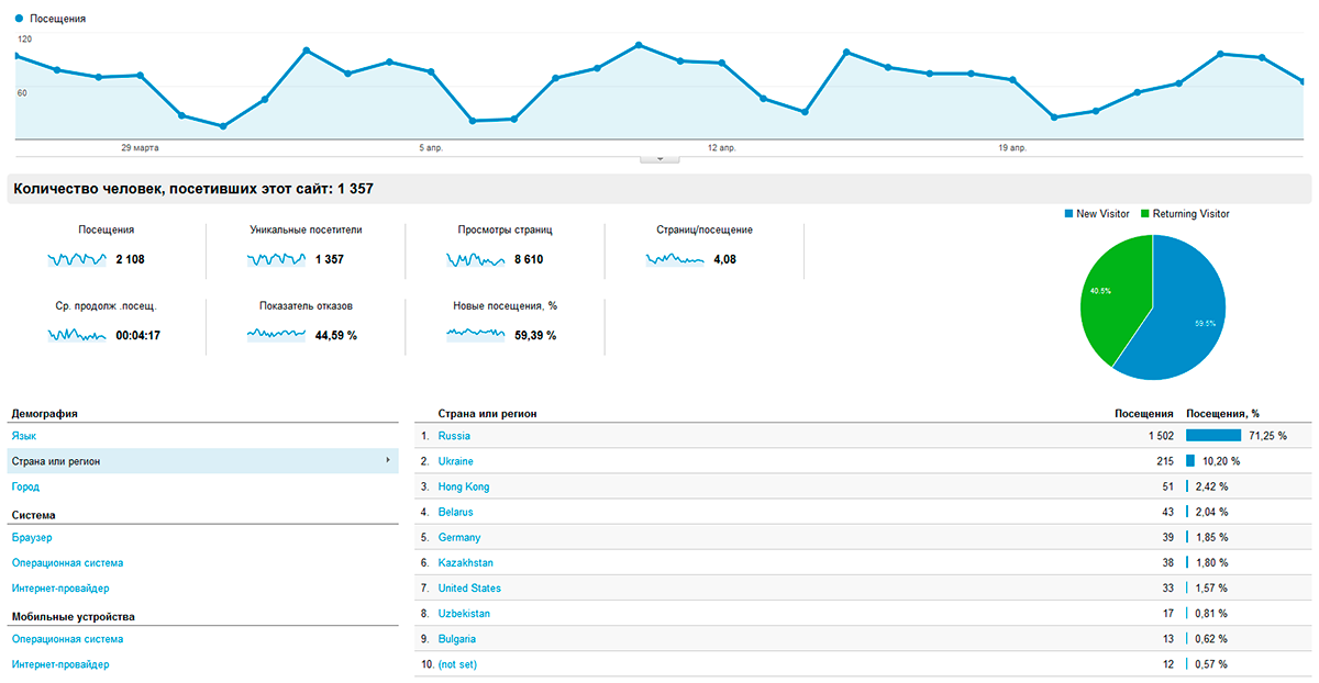 1357 уникальных посещений, всего посещений 2108