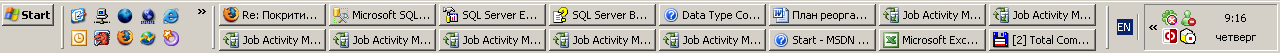 DШ>Сразу же налицо одно неудобство , и в принципе стандартный таскбар за него и не должен отвечать, а именно: DШ>до сих пор многие приложения, как видно из скриншота, страдают болезнью менять заголовок окна на имя приложения + имя открытого документа (в свое время был даже какой-то guidance от ms), минусы которого сильно проявляются при сворачивании окна — для примера, окна Job Activity Monitor (какой сервер?), хотя многие приложения были излечены...