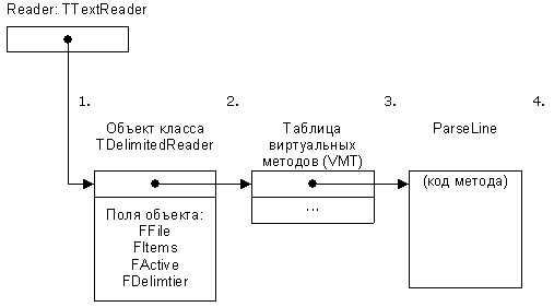 S := TTextReader.GetClassName; // S получит значение 'TTextReader'// Создание объекта класса TDelimitedReader
