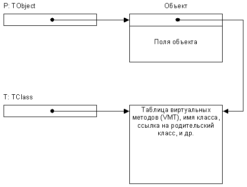 Объекты могут выступать в программе не только в качестве переменных, но также элементов массивов, полей записей, параметров процедур и функций. Кроме того, они могут служить полями других объектов. Во всех этих случаях программист фактически оперирует указателями на экземпляры объектов в динамической памяти. Следовательно, объекты изначально приспособлены для создания сложных динамических структур данных, таких как списки и деревья. Указатели на объекты для этого не нужны.