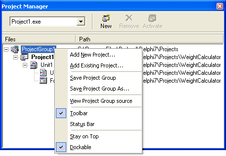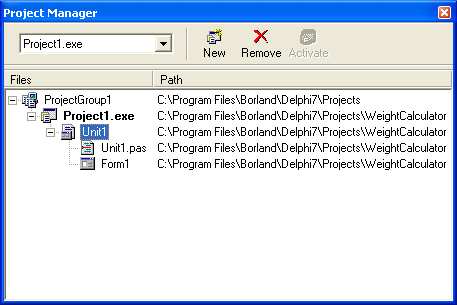 Помните, с чего вы начинали знакомство со средой Delphi? Конечно, с формы. Итак, первая составная часть проекта — это текстовый файл с расширением DFM, описывающий форму. В DFM-файле сохраняются значения свойств формы и ее компонентов, установленные вами в окне свойств во время проектирования приложения. Количество DFM-файлов равно количеству используемых в приложении форм. Например, в нашем примере об идеальном весе используется только одна форма, поэтому и DFM-файл только один — Unit1.DFM.