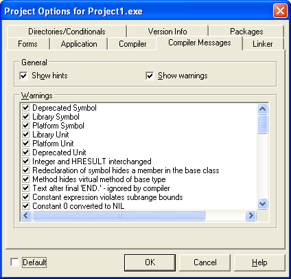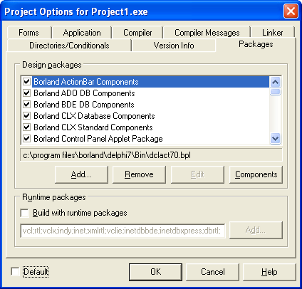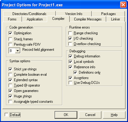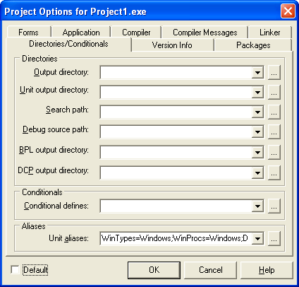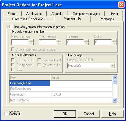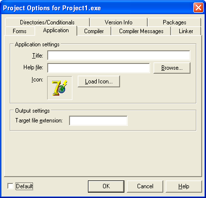 Если вы желаете задать заголовок (свойство Title), значок (свойство Icon) и имя файла справочника (свойство HelpFile) для приложения, не корректируйте главный программный файл, а обратитесь лучше к диалоговому окну Project Options (рисунок 7.45), которое появляется по команде меню Project | Options... .