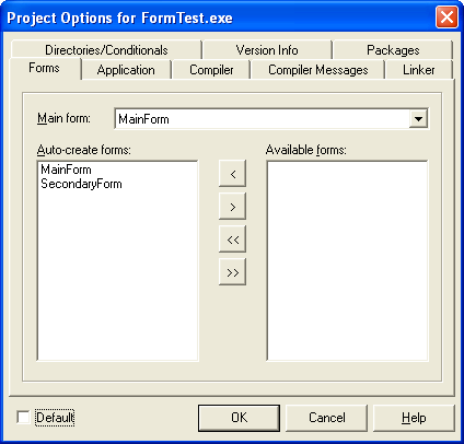 Вы обнаружите, что выбрана форма MainForm, которая была добавлена в проект первой (среда Delphi создает ее автоматически при создании нового проекта). Вы можете выбрать другую форму — и тогда она будет отображаться при запуске приложения. В данном случае этого делать не надо, поскольку главная форма уже установлена правильно.