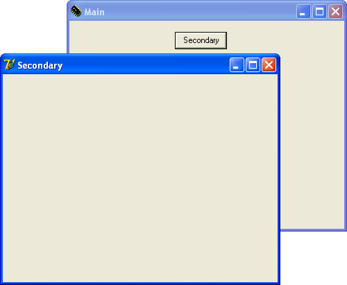 4. Выполните компиляцию и запустите приложение. Когда на экране покажется форма MainForm, нажмите кнопку Secondary. На экране покажется еще одна форма — SecondaryForm. Вы можете произвольно активизировать любую из двух форм (рисунок 7.36).