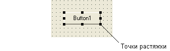 На стадии проектирования любой компонент может быть выделен на форме. Свойства выделенного компонента видны в окне свойств и доступны для редактирования. Чтобы выделить компонент, достаточно навести на него указатель и нажать кнопку мыши. Вокруг компонента тут же появятся так называемые "точки растяжки" (sizing handles) для изменения размеров компонента по ширине и высоте (рисунок 7.40).