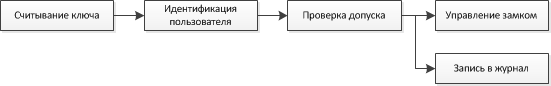 Придумаем простую систему контроля доступа, работающую на одной двери. Алгоритм действия такой системы следующий:
