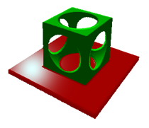 Опираясь на введенное определение, построим воксельную модель рассматриваемого тела, представляющего собой разность куба и шара, представленного на рисунке 1. Для этого для дискретных точек x в пределах области определения скалярного поля введем функции куба и эллипсоида. Значения функций внутри куба и эллипсоида будут равны v, а за пределами 1 - v. Границы куба будут задаваться координатами его минимальной точки m = {xmin, ymin, zmin} и максимальной точки M = {xmax, ymax, zmax}. Эллипсоид будет задаваться центром c = {cx, cy, cz} и радиусами r = {rx, ry, rz} вдоль соответствующих осей.