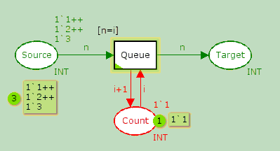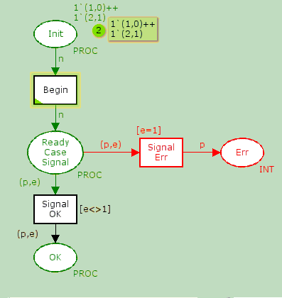 colset INT = int timed; colset BOOL = bool timed; colset RES_INFO = product INT*INT; var n,k: INT; |