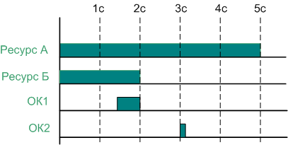 В качестве примера рассмотрим абстрактное устройство, для которого необходимо построить РСП. У этого управляющего устройства имеется конечное множество однотипных каналов (например, исполнительных механизмов), над которыми выполняются определенные процедуры по временной диаграмме. Для выполнения этой задачи задействуется ограниченное число ресурсов (например, источников питания). Процесс проведения работы с одним каналом представлен на рисунке 2.
