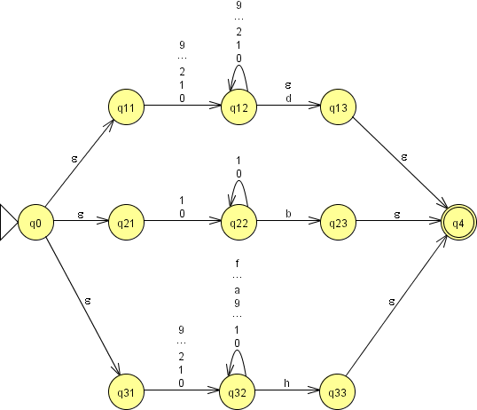 Рисунок 8. ε-НКА, распознающий числа в ассемблерном формате