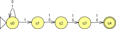 | q0 | 0 | А вот теперь автоматугадал, что это завершение, и что следующим входным символом тоже будет 0 (иначе нет смысла переходить в q1 – из него нет переходов по 1). Переход в q1 | q1 |