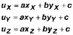 x’ = ax + by + c; y’ = dx + ey + f. |