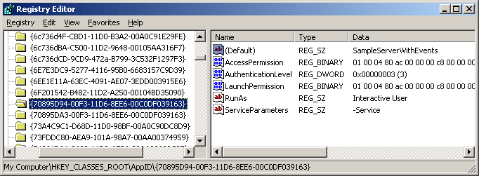 Чтобы заставить ATL-сервер работать так, как написано в большинстве книг по COM, т.е. чтобы правами доступа можно было управлять через dcomcnfg, нужно изменить инициализацию защиты так, чтобы настройки считывались из ветки реестра, соответствующей AppID. Для этого нужно заменить приведенные выше строки кода на следующие: