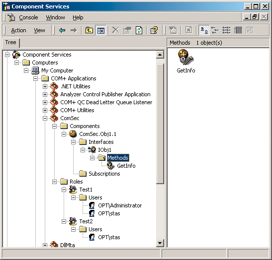 Из книг по COM многие знают, что права доступа к объектам сервера и другая информация о защите хранятся в реестре и обычно задаются с помощью утилиты dcomcnfg (закладка Security). Реально же атрибуты защиты (кроме прав на активацию) задаются функцией CoInitializeSecurity. Для чтения из реестра настроек защиты нужно вызвать CoInitializeSecurity с определенными значениями параметров.