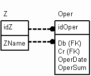 SELECT sb.Db, Z.ZName, sb.Cr, sb.Z FROM Z INNER JOIN (SELECT ISNULL(DbS.Db, CrS.Cr) AS Z, ISNULL(CrS.CrSum, 0) AS Db, ISNULL(DbS.DbSum, 0) AS Cr FROM (SELECT Cr, SUM(OperSum) AS CrSum FROM Oper GROUP BY Cr) AS CrS FULL OUTER JOIN (SELECT Db, SUM(OperSum) AS DbSum FROM Oper GROUP BY Db) AS DbS ON CrS.Cr = DbS.Db ) AS sb ON Z.idZ = sb.Z |