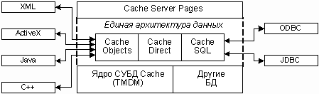 СУБД Cache является уникальной системой. Наряду с реализацией в полном объеме основных принципов объектной технологии в СУБД Cache поддерживается структурированный язык запросов SQL. Это, как уже говорилось, обеспечивает выполнение запросов по стандарту, поддерживаемому многими инструментальными средствами. Кроме этого, с помощью единой архитектуры данных Cache возможно автоматическое преобразование описаний реляционных таблиц в классы объектов. При поступлении на сервер Cache SQL DDL-описания реляционной таблицы, Cache автоматически преобразует DDL-описание в свою внутреннюю форму и сохраняет полученную структуру в словаре данных. С помощью поставляемых в стандартной комплектации Java- или ODBC-драйверов возможен также и импорт данных из реляционных таблиц в многомерные структуры ядра Cache . Это позволяет Cache работать с данными как в виде реляционных таблиц, так и в виде классов объектов. Таким образом, при переходе с реляционной на объектную технологию разработка не начинается с "нуля" - многое делается Cache автоматически.