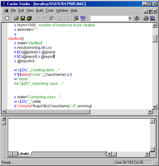 Внешний вид утилиты Cache Studio приведен на рис.5. Для удобства пользователя в Cache Studio реализована контекстная подсветка команд, функций и операторов COS.
