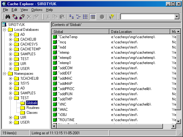 Для доступа к многомерным структурам ядра СУБД Cache можно воспользоваться утилитой Cache Explorer. Утилита Cache Explorer предоставляет возможности просмотра, печати, импорта/экспорта глобалей, классов и программ Cache. Внешний вид утилиты приведен на рис. 6.