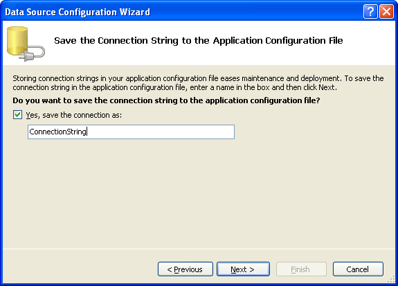 При редактировании свойства запустится встроенный в VS 2005 редактор строки подключения: