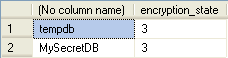 SELECT DB_NAME(database_id), encryption_state FROM sys.dm_database_encryption_keys |