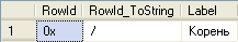 DECLARE @Root HierarchyId SET @Root = HierarchyId::GetRoot() INSERT dbo.HierarchyTable OUTPUT INSERTED.RowId, INSERTED.RowId.ToString() AS RowId_ToString, INSERTED.Label VALUES (@Root, 'Корень') |