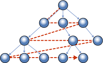 Чтобы этот запрос работал эффективно, должен существовать индекс по колонке RowId. Такой индекс в BOL называется "depth-first" ("сначала в глубину"). Откуда взялось такое название, понятно из схемы обхода узлов при такой сортировке, приведенной на рисунке 2. Если нужный индекс есть, то SQL-сервер преобразует вышеприведенный запрос к следующему виду: