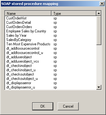 Для работы с таблицами необходимы хранимые процедуры, которые будут доступны как Web-методы. Их, как и таблиц, немного: