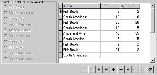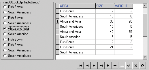 TmmDBLookUpRadioGroup = class(TmmDBListRadioGroup) private FDataLink: TmmRGWriteDataLink; procedure SetDataField(const Value: string); procedure SetDataSource(const Value: TDataSource); function GetDataField: string; function GetDataSource: TDataSource; protected procedure Click; override; public constructor Create(AOwner: TComponent); override; published property DataSource: TDataSource read GetDataSource write SetDataSource; property DataField: string read GetDataField write SetDataField; end; TmmDBLookUpRadioGroup = class(TmmDBListRadioGroup) private FDataLink: TmmRGWriteDataLink; procedure SetDataField(const Value: string); procedure SetDataSource(const Value: TDataSource); function GetDataField: string; function GetDataSource: TDataSource; protected procedure Click; override; public constructor Create(AOwner: TComponent); override; published property DataSource: TDataSource read GetDataSource write SetDataSource; property DataField: string read GetDataField write SetDataField; end; { TmmDBLookUpRadioGroup } procedure TmmDBLookUpRadioGroup.Click; begin inherited; if FDataLink.EditState then with FDataLink do Field.Value := Items[ItemIndex]; end; constructor TmmDBLookUpRadioGroup.Create(Aowner: TComponent); begin inherited; FDataLink := TmmRGWriteDataLink.Create(Self); Enabled:=False; end; function TmmDBLookUpRadioGroup.GetDataField: string; begin Result := FDataLink.FieldName; end; function TmmDBLookUpRadioGroup.GetDataSource: TDataSource; begin Result := FDataLink.DataSource; end; procedure TmmDBLookUpRadioGroup.SetDataField(const Value: string); begin FDataLink.FieldName := Value; end; procedure TmmDBLookUpRadioGroup.SetDataSource(const Value: TDataSource); begin FDataLink.DataSource := Value; end; |