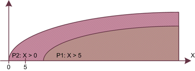 Рисунок 2 – Сильные и слабые условия (P1 сильнее P2)