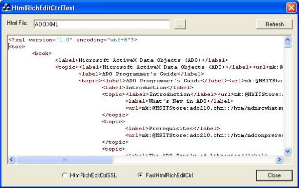 Автор взял за исходный код CHtmlRichEditCtrlSSL от Derek Lakin, но существенно увеличил его производительность при обработке файлов большого объема. Кроме того, была добавлена возможность «разбора» вводимого текста «на лету» (parsing as you type).