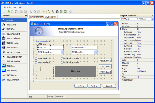 Данная утилита позволяет визуально разрабатывать «нестандартные» формы для инсталляторов, создаваемых при помощи Nullsoft Scriptable Install System.