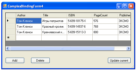 Рисунок 8. Сложная привязка данных с использованием BindingList<T>.