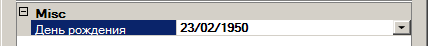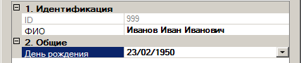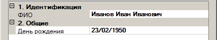 [DisplayName("ФИО")] [Description("Фамилия Имя Отчество")] [Category("1. Идентификация")] publicstring Name { get { return _name; } set { _name = value; } } /// <summary>/// День рождения/// </summary> [DisplayName("День рождения")] [Description("День рождения он день рождения и есть")] [Category("2. Общие")] public DateTime Birthday { get { return _birthday; } set { _birthday = value; } } |