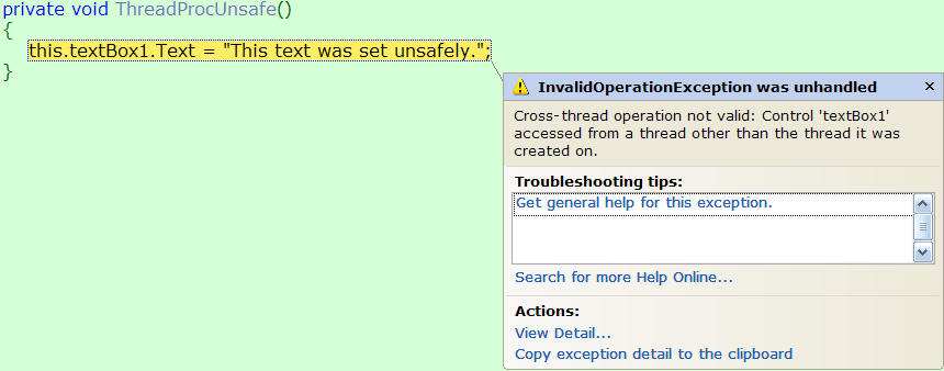 Теперь программа спокойно продолжает заниматься своими делами и ждет первого события CheckForUpdateCompleted. Замечу, что ApplicationDeployment настолько любезен, что вызывает обработчики обоих событий в “правильной”, UI-нити, так что можно тут же в обработчике работать с control-ами формы. Обработчик первого события в качестве второго параметра получает объект типа CheckForUpdateCompletedEventArgs, который, в свою очередь, предоставляет целый ряд интересных свойств. Мы воспользуемся только одним свойством, UpdateAvailable (тип bool). Если оно возвращает true, то новая версия обнаружена, и есть все основания прямо из этого обработчика инициировать фазу 2: