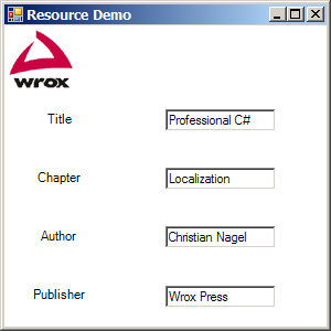 Title = Professional C# Chapter = Localization Author = Christian Nagel Publisher = Wrox Press |