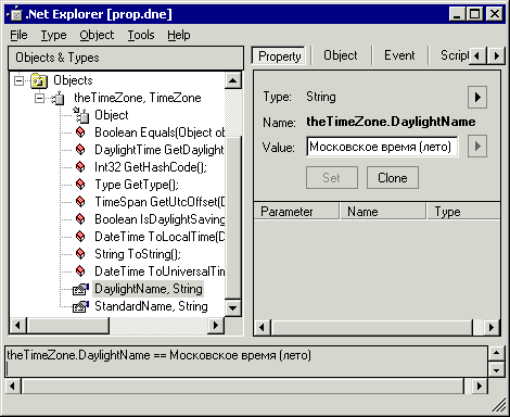 Кнопочка "Clone" полезна в тех случаях, когда хочется использовать значение свойства в качестве параметра для вызова метода. Но напрямую этого (в этой версии программы) сделать нельзя – параметры методов должны ссылаться на "настоящие" объекты. Поэтому приходится создавать новый объект, копируя в него значение свойства (клонировать свойство). Этот объект уже можно использовать как параметр вызова.