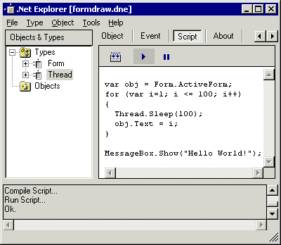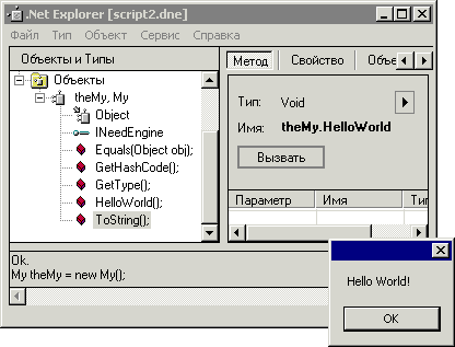 Прошу заметить, что через .Net Explorer вы получаете доступ ко всей мощи программного интерфейса .Net, и при этом не требуется установка Visual Studio .Net! Да и зачем Visual Studio, ведь знания языков и программистской квалификации не требуется!