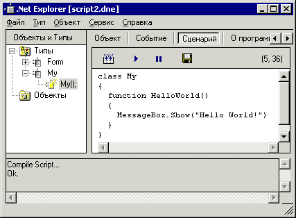 В .Net Explorer’e вся эта «премудрость» спрятана в классе-элементе Script, работу которого представляет пользователю страница ScriptPage.