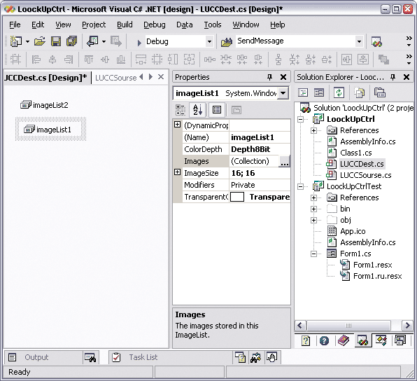 Самое интересное, что сериализация компонентов (в том числе и в дизайнере самого компонента) по возможности осуществляется в код. Так, если открыть дизайнер компонента (двойным щелчком на соответствующем файле в «Solution Explorer», см. рисунок 1) и бросить на его поверхность компонент ImageList (из Toolbox, палитры компонентов), то в описание компонента будет добавлена строка, описывающая переменную-член, описывающую добавленный ImageList: