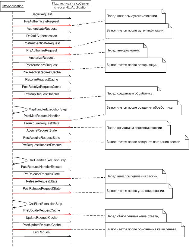 Рисунок 4. Порядок исполнения “шагов” HttpApplication.