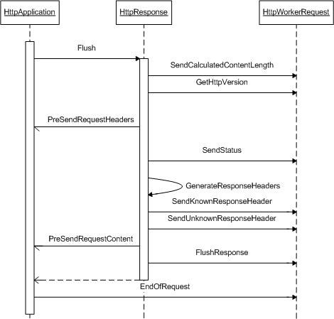 Закончив процесс инициализации, HttpRuntime создает обработчик события, извещающего об окончании отсылки ответа, и передает его клиентской программе через вызов метода HttpWorkerRequest.SetEndOfSendNotification. В этом обработчике производится освобождение ресурсов, занятых объектами HttpRequest и HttpResponse. Так что программистам, работающим с HttpWorkerRequest, настоятельно рекомендуется вызывать этот метод, чтобы предотвратить утечку ресурсов.