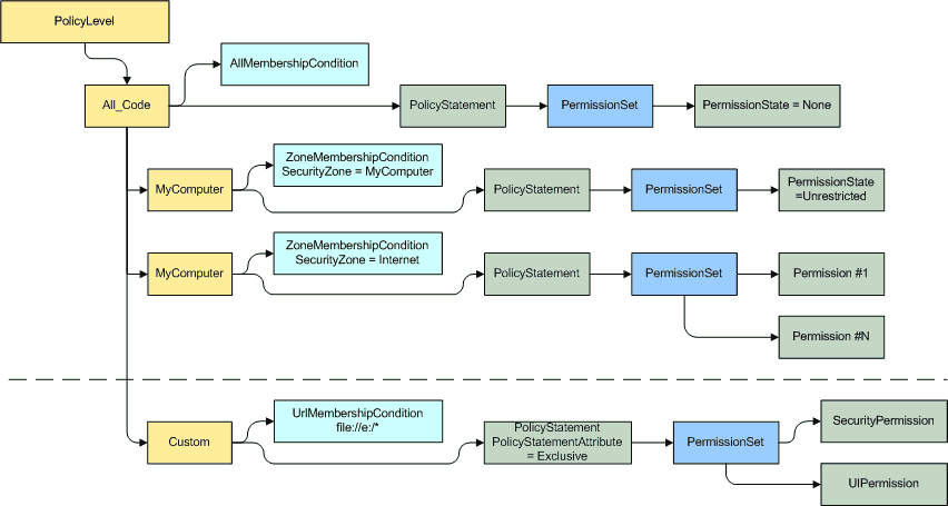 | AllMembershipCondition | Данному условию удовлетворяет любой код. Обычно данное условие используется только на корневом уровне (All_Code). |