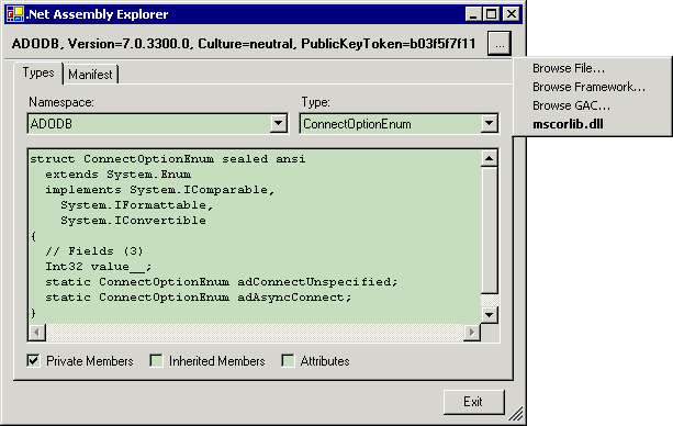 | ПРИМЕЧАНИЕ Да что там утилиты! Целые языки программирования работают исключительно благодаря метаданным. В среде .Net живут скриптовые, безтиповые языки (JScript и VBScript). Их работа основана на расшифровке и использовании метаданных во время исполнения программы. IDispatch отдыхает. |