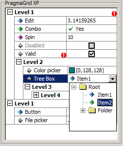 PragmaGrid XP – это редактор свойств (Property Browser). Предназначен для визуализации и редактирования свойств объектов. Может быть использован для создания мастеров конфигурации, страниц свойств и многого другого. Поддерживает девять различных типов свойств таких как: edit, combo, tree, button, spin, file, color, checkbox, group. Для российских программистов – free.