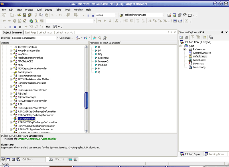 Среди алгоритмов с открытым ключом можно выделить следующие: RSA (Rivest-Shamir-Adleman), DSA (Digital Signature Standard), DH (Diffie-Hellman). Из этого небольшого списка .NET поддерживает лишь первые два – RSA и DSA.