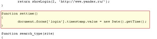 Обратите внимание, при отправке формы (на рисунке это строка 75) происходит вызов функции settime() – это клиентская функция. Если вы попытаетесь найти ее на странице, то не найдете, так как она находится в отдельном файле JavaScript (см. рис. 2).